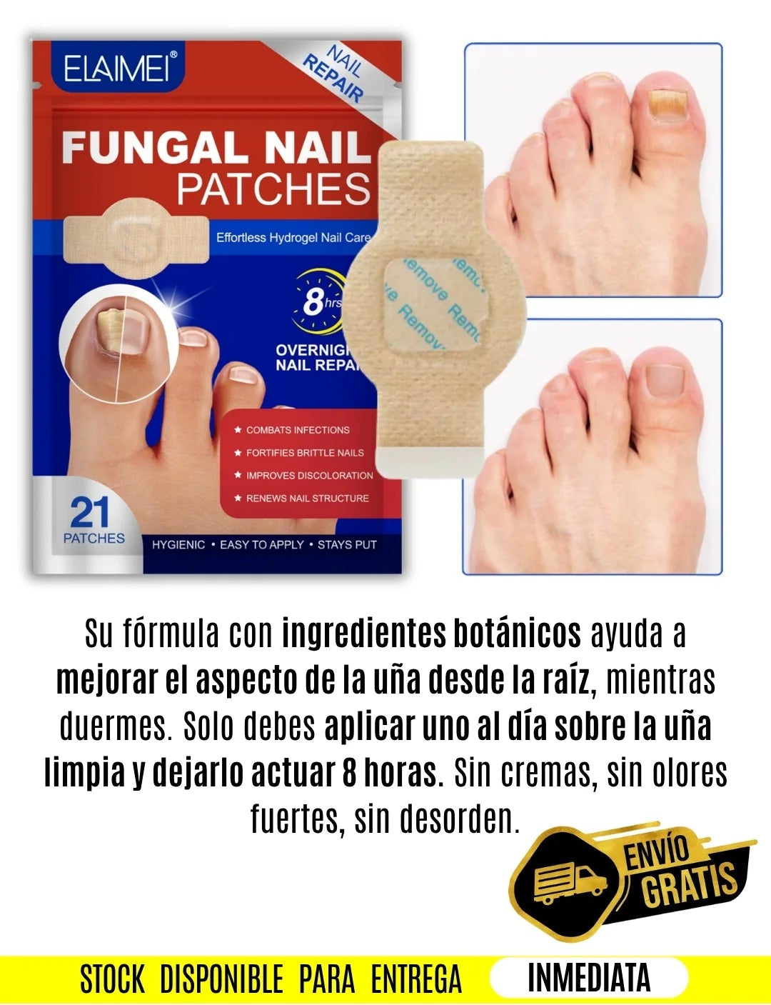 Cada caja incluye 21 parches (uso diario). Muchos usuarios notan cambios en 1 a 3 semanas, pero para resultados más sostenidos se recomienda al menos 2 a 3 ciclos según el estado de la uña.