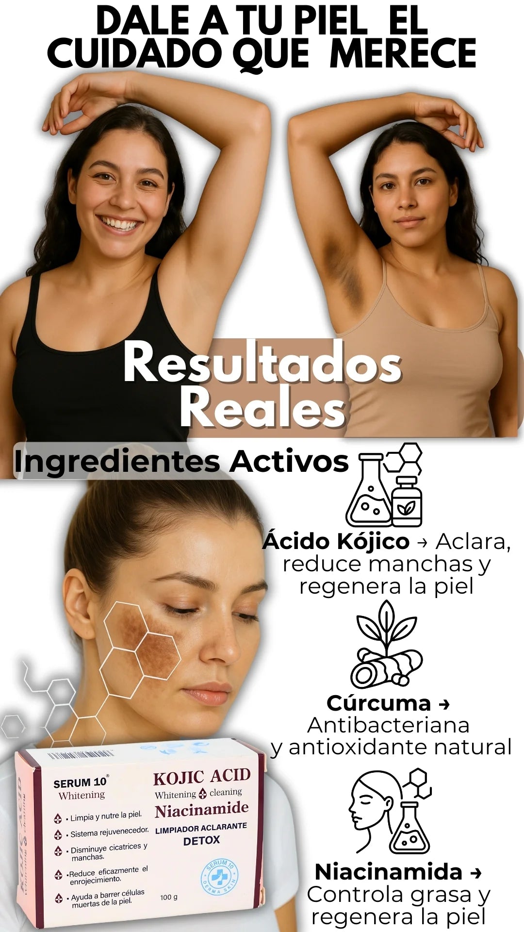 Tenía manchas en las axilas por los desodorante fuertes y este jabón me ha aclarado muchísimo. También lo uso en la cara y me gusta como me deja la piel