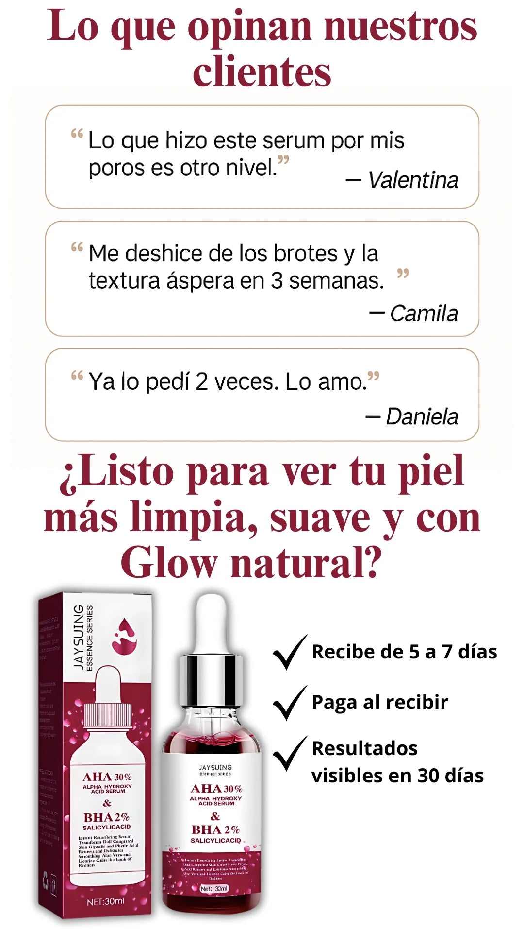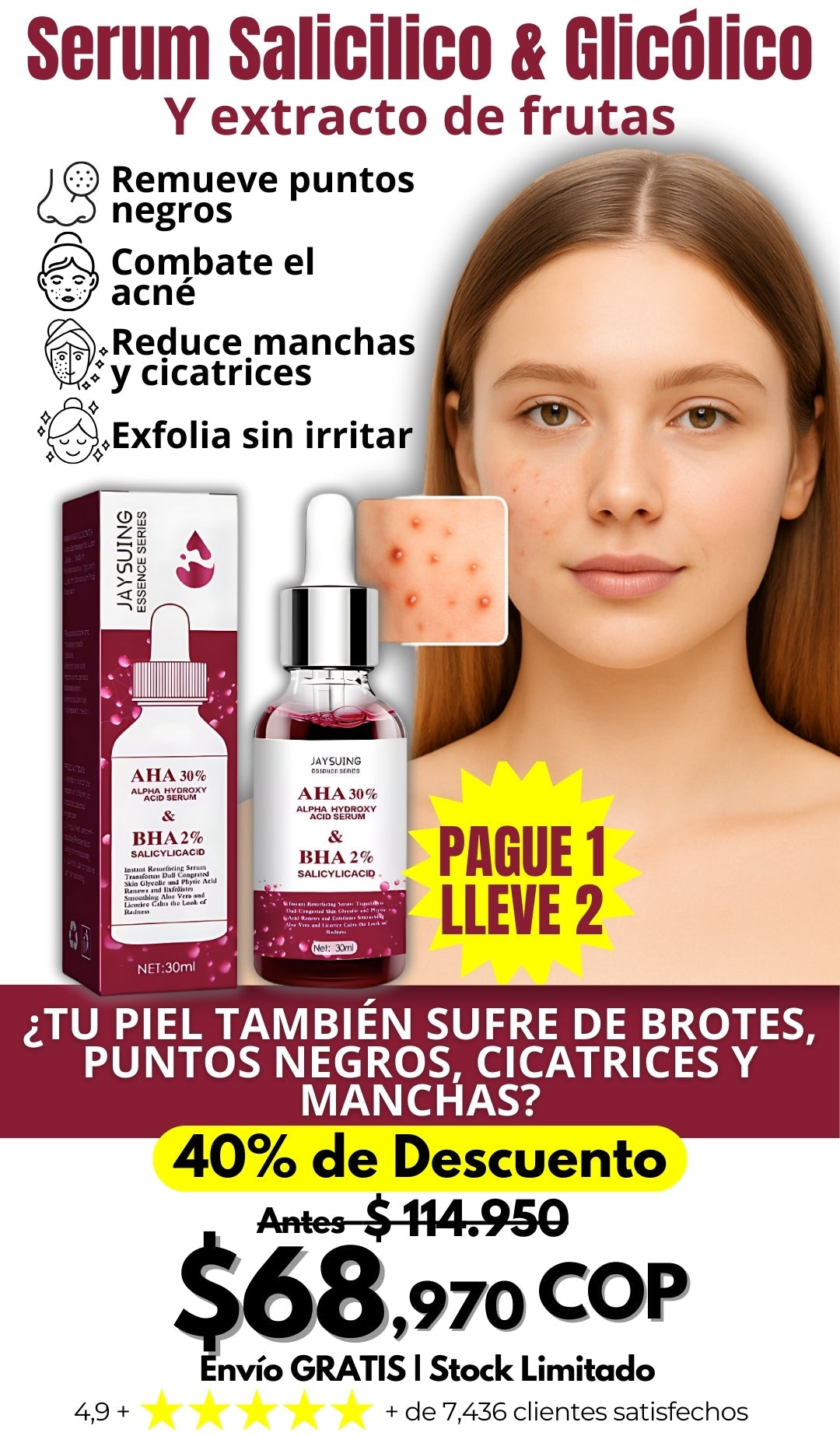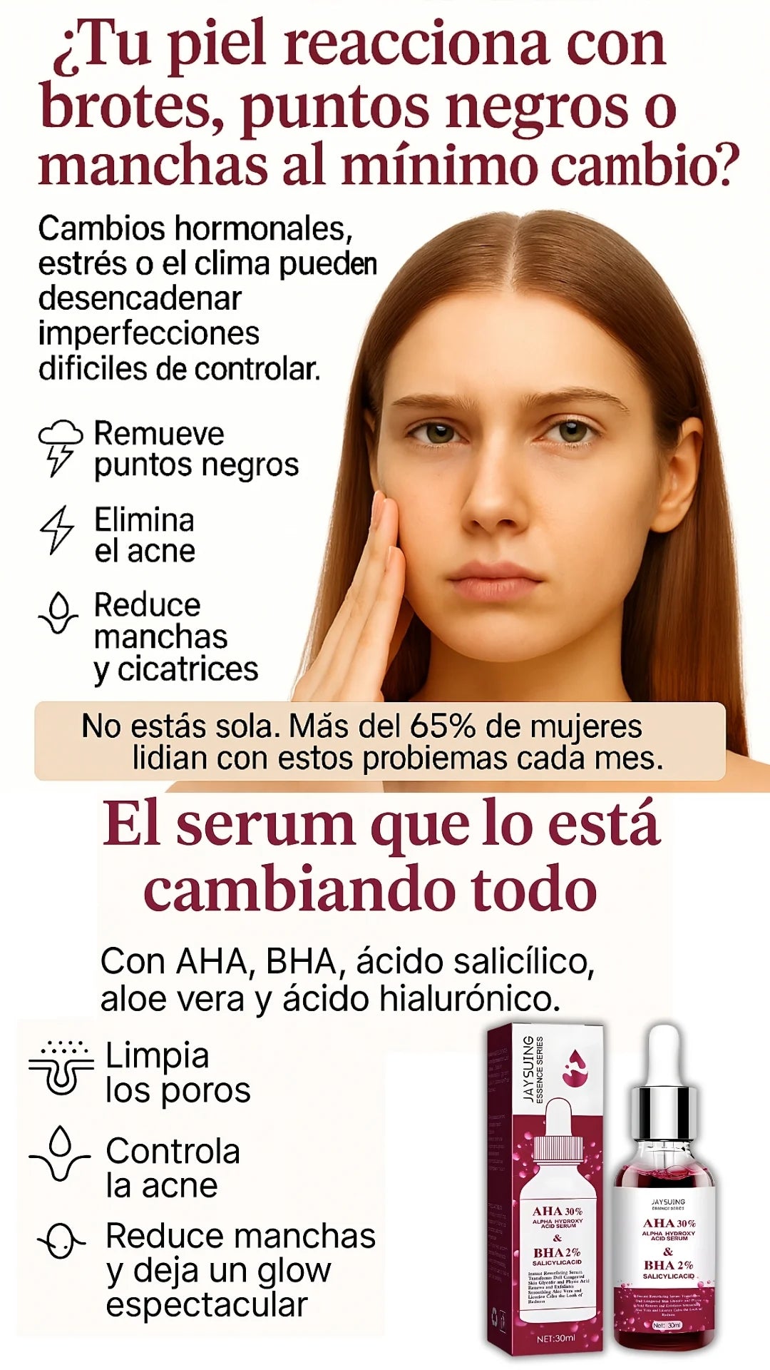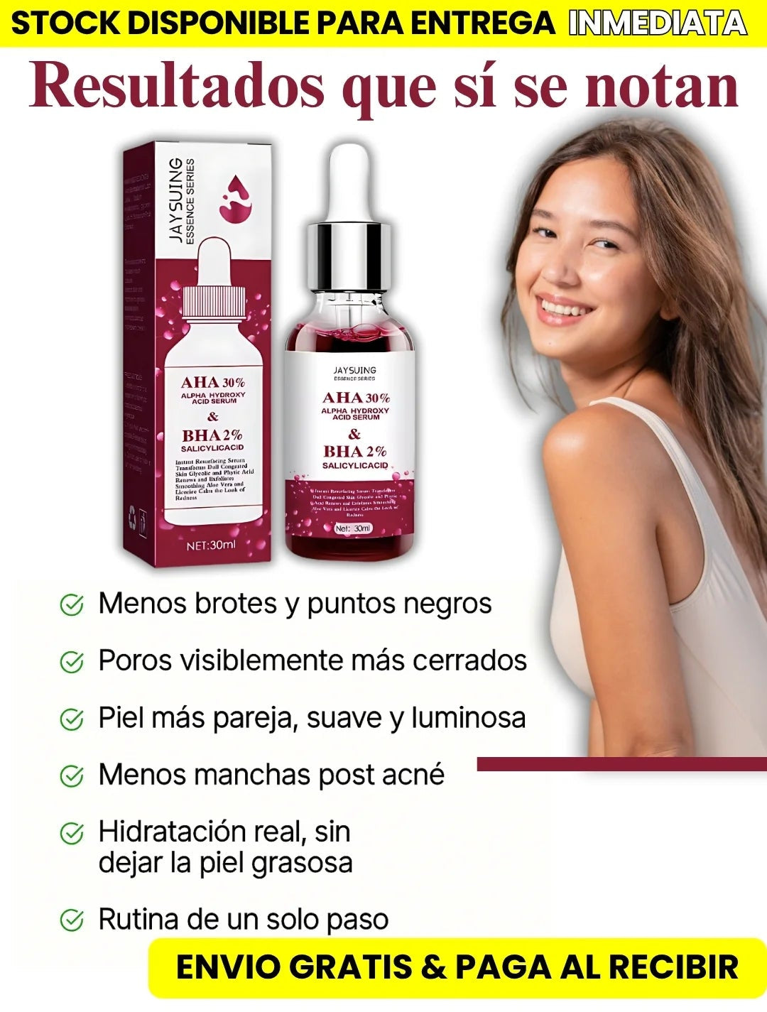 ¡Sí! Está formulado especialmente para pieles grasas, con puntos negros, espinillas o brotes. Su mezcla de AHA, BHA y ácido salicílico limpia los poros y regula la producción de grasa sin resecar.