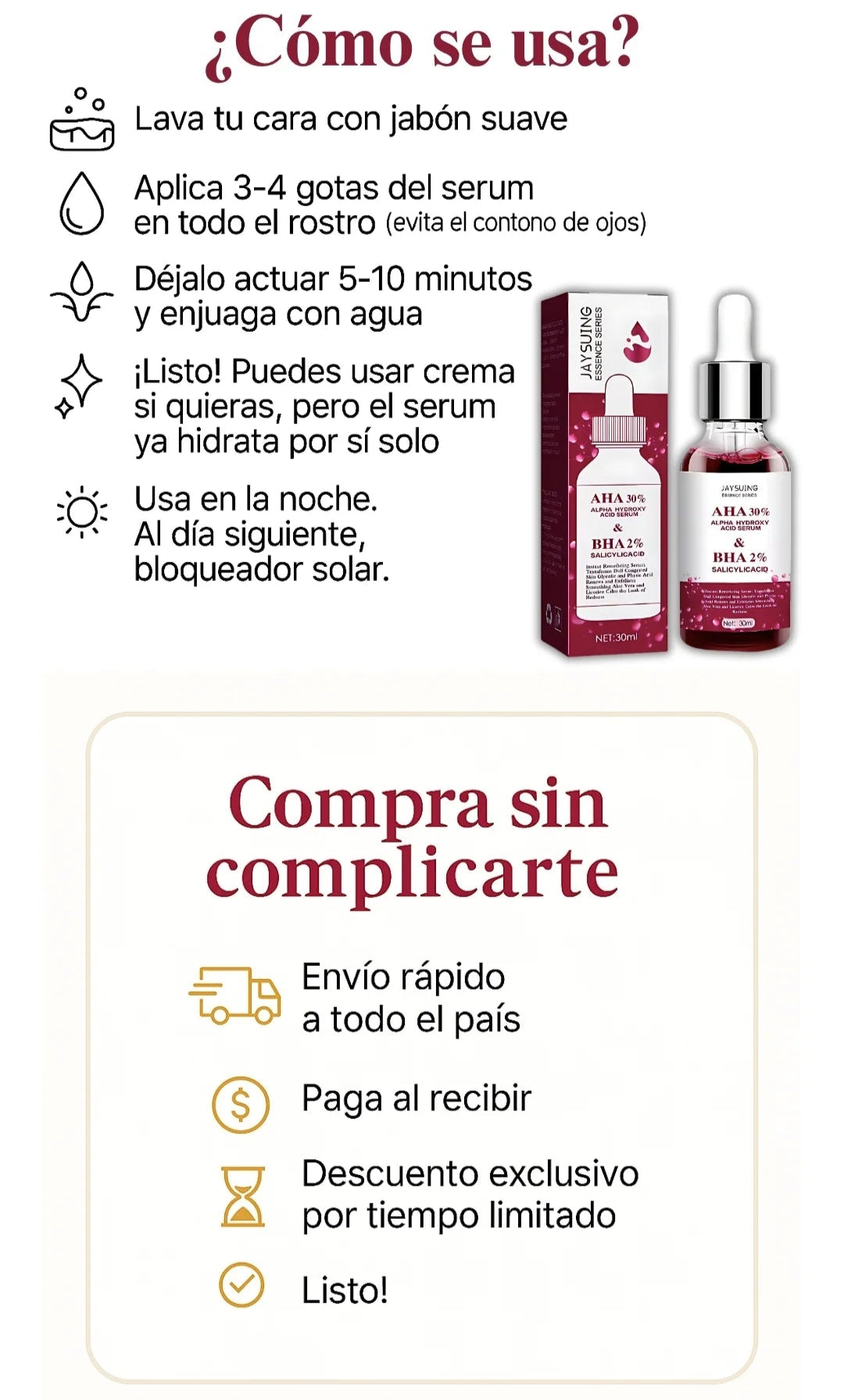 No. A diferencia de otros exfoliantes, este serum contiene aloe vera, ácido hialurónico y glicerina, que calman, hidratan y evitan la irritación, incluso en pieles sensibles.