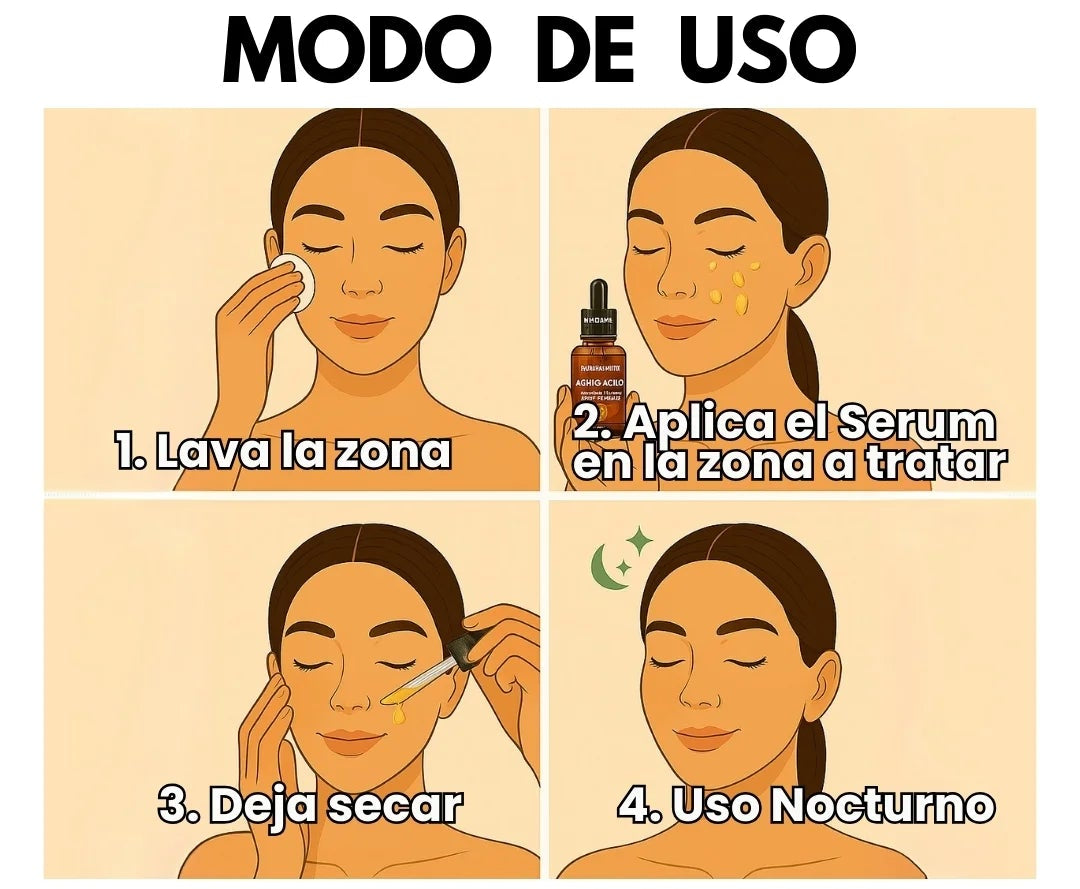La primera semana haz una prueba de sensibilidad aplicando 2 veces en la semana e ir aumentando su constancia. Su uso es Nocturno.