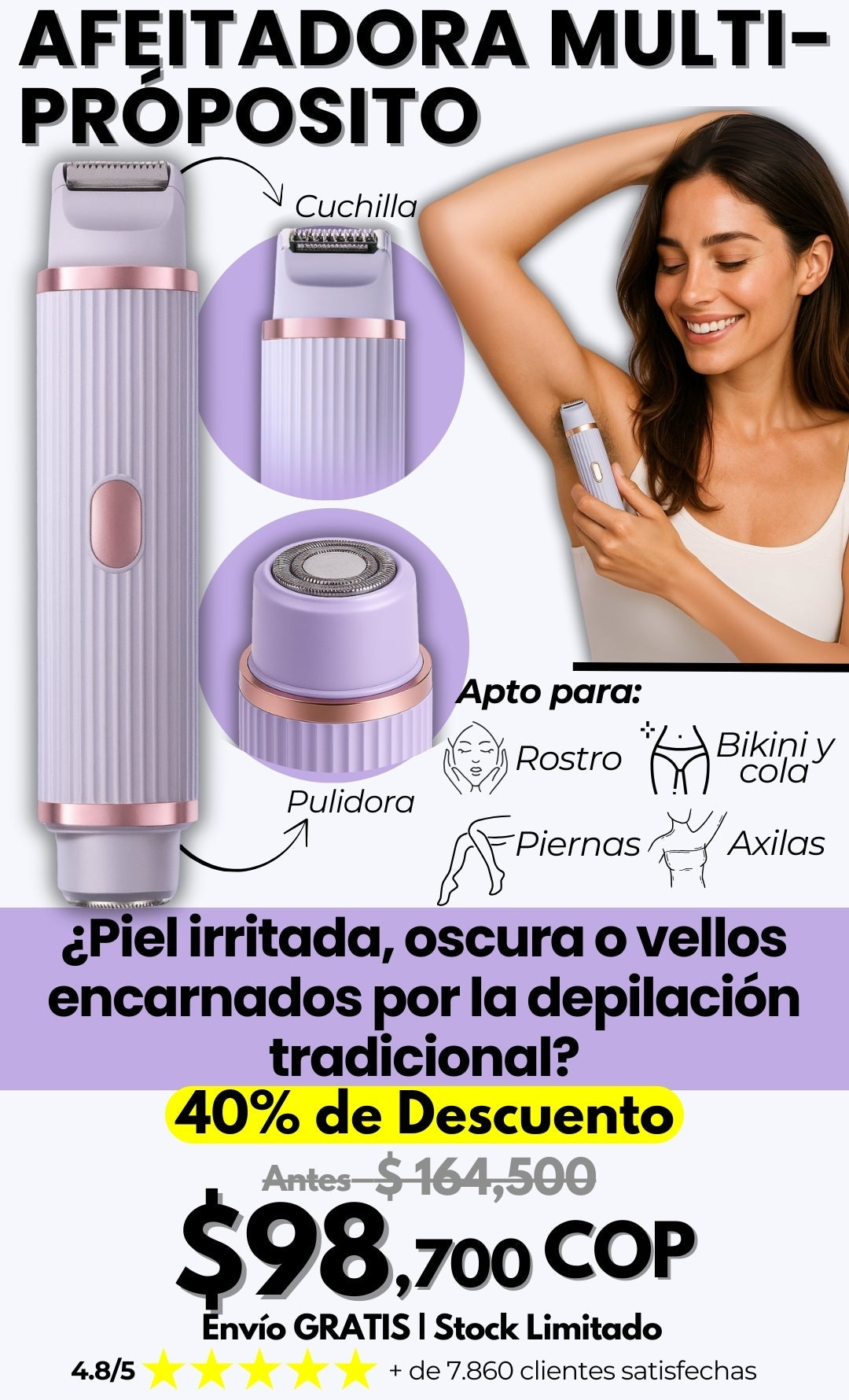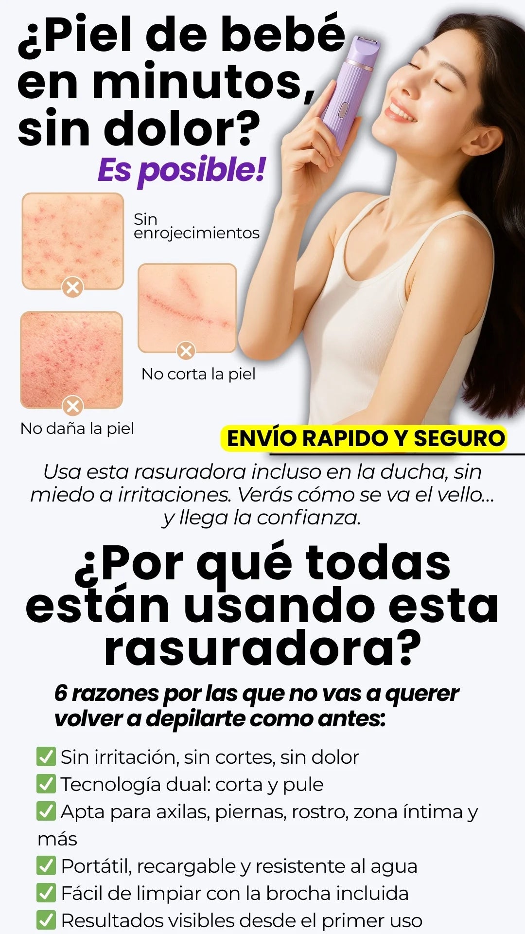 Sí, está diseñada para zonas sensibles como bikini, axilas y rostro. Su cabezal es preciso y suave, ideal para evitar cortes o vellos encarnados.