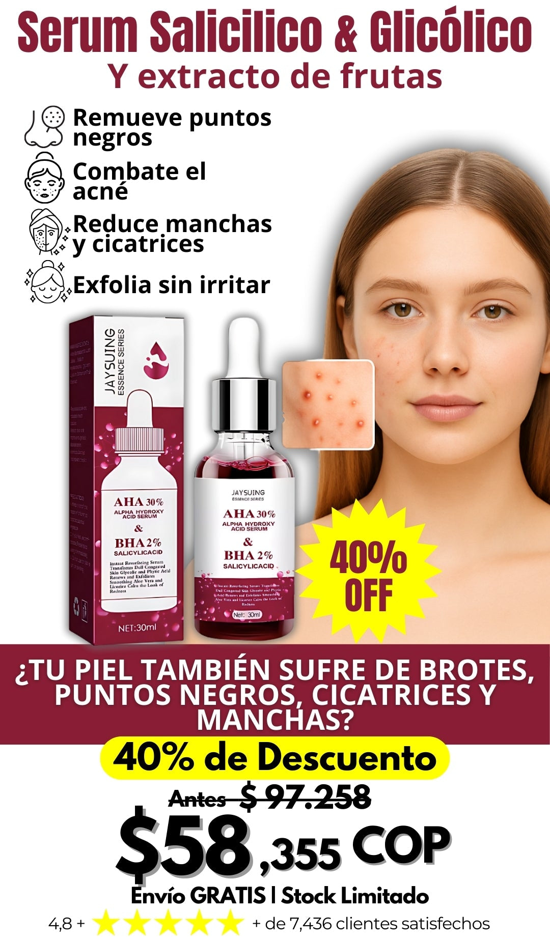 ¡Sí! Está formulado especialmente para pieles grasas, con puntos negros, espinillas o brotes. Su mezcla de AHA, BHA y ácido salicílico limpia los poros y regula la producción de grasa sin resecar.